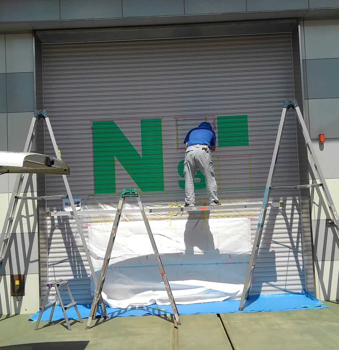 シャッターの書き文字サインを施工させていただきました