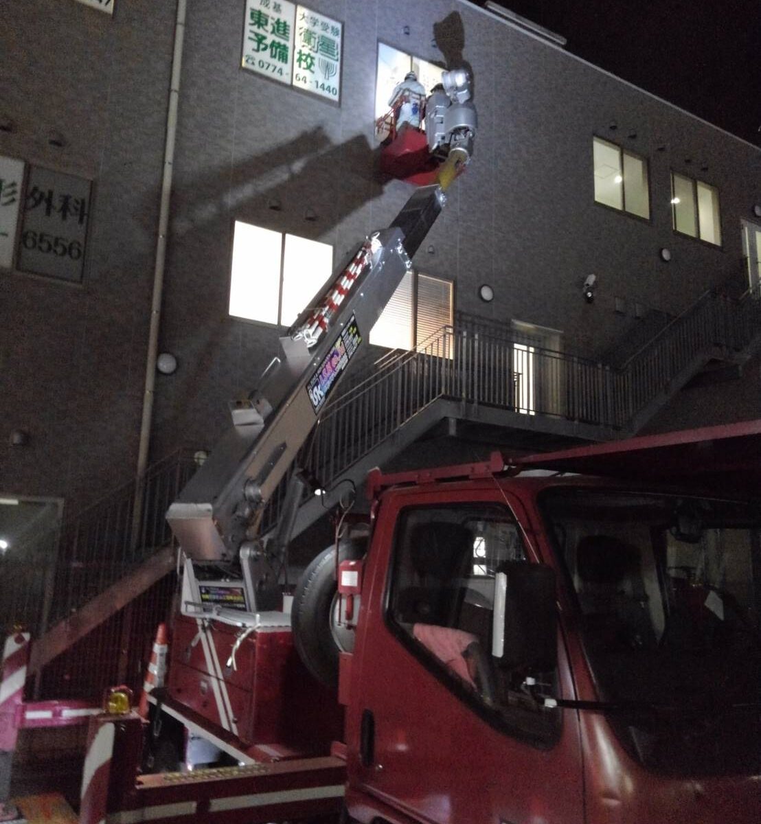 ? 夜間高所作業車作業_施工事例 | 岩崎システム工芸株式会社